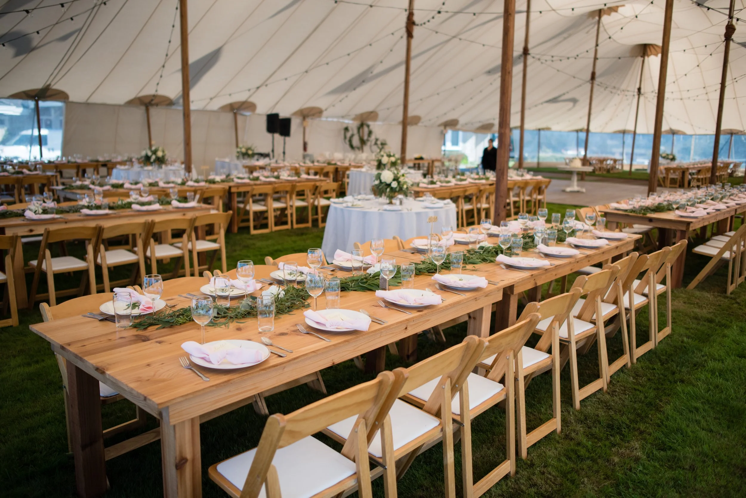 When booking a venue, it’s important to consider your rain plan and shade/heat plan. Does the venue have an indoor space that can be utilized? If not, where is the best location for a tent and or shade umbrellas? When considering heat plans, shade is important but air conditioning may also be crucial when temperatures approach the 90’s or 100 degree mark. Some tents have the capacity to add a thermostat for air conditioning or heat. While clear top tents are absolutely stunning, they serve as a greenhouse and will roast your unsuspecting guests. White tops or a Sperry tent are a much better option. We also add tents for catering so this will need to be factored in to your budget.
